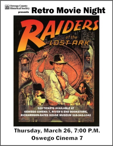 Join us for Dr. Indiana Jones (played by Harrison Ford)’s thrilling archeological adventure as we screen the 1981 film, “Raiders of the Lost Ark” at Oswego Cinema 7.