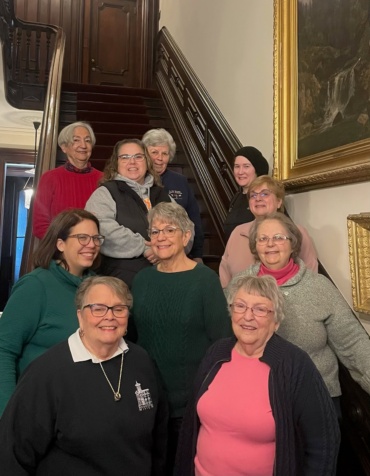 Featured image: Auction Planning Committee on the Staircase in the Richardson-Bates House: Peg McKinstry and Lynn Patterson (front row), Andrea Vickery, Eva Corradino, OCHS President, Mary Kay Stone (second row); Charlene Mitchell, Jennifer Bertollini, Mary Shanley, Alyson DeCosa, and Carol Shannon. Not pictured: Greg Caster.